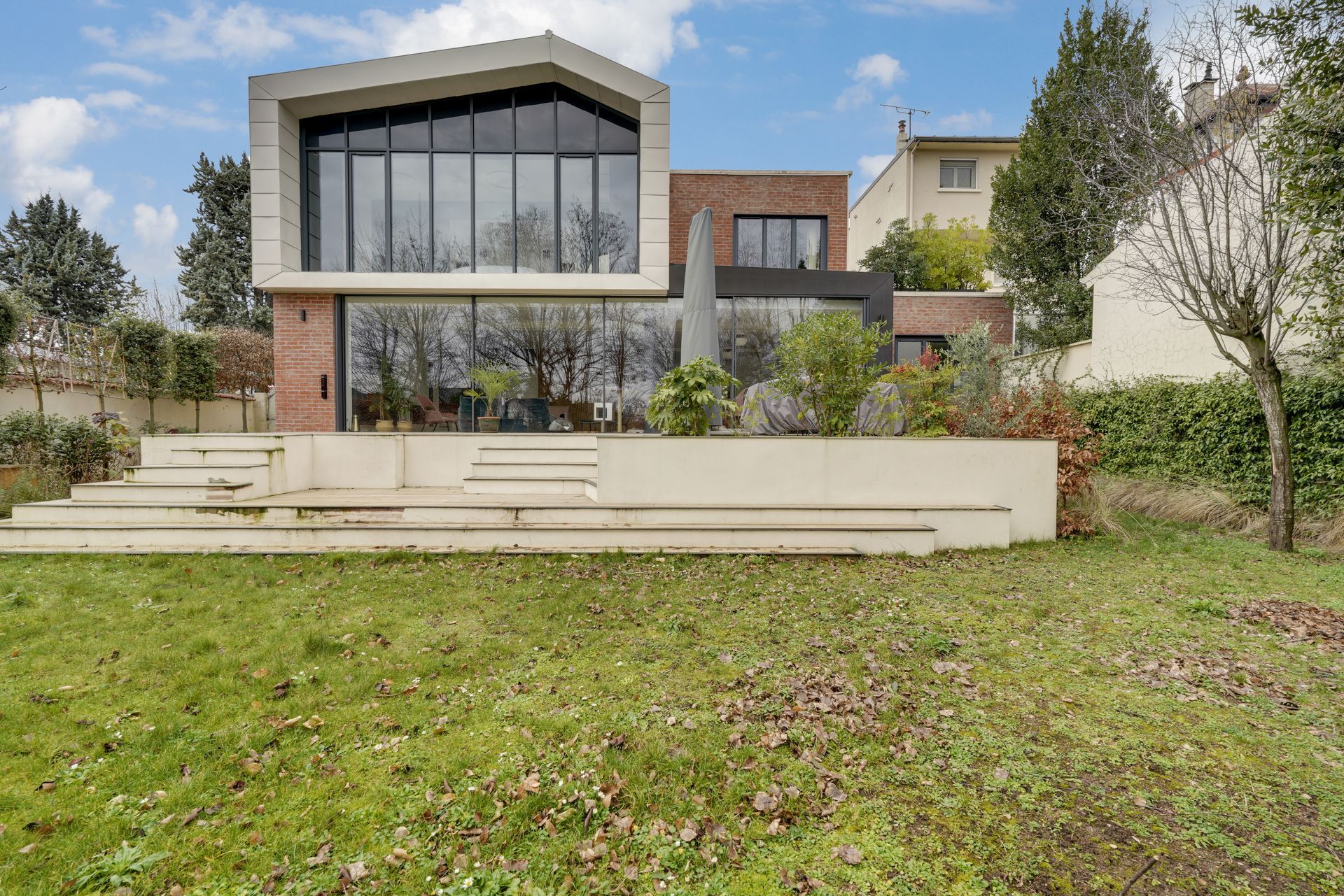 Notre système de façade vitrée Fin-Vista combine à la fois de très haute performance thermique pour le confort d'hiver, accompagné d'un confort d'été idéal pour l'exposition plein sud grâce à nos vitrages de protections solaires.